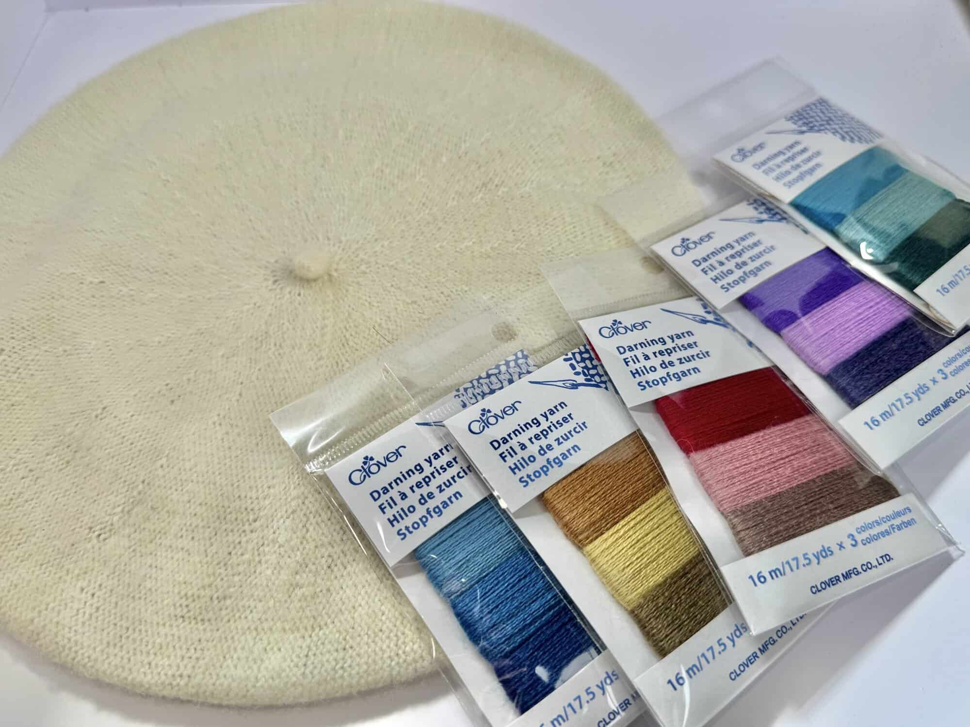 Ready to stitch your own Spring time beret or give your favorite accessory a second life? Grab some of Clover’s brand new Darning Yarn and start stitching something beautiful! 🙂