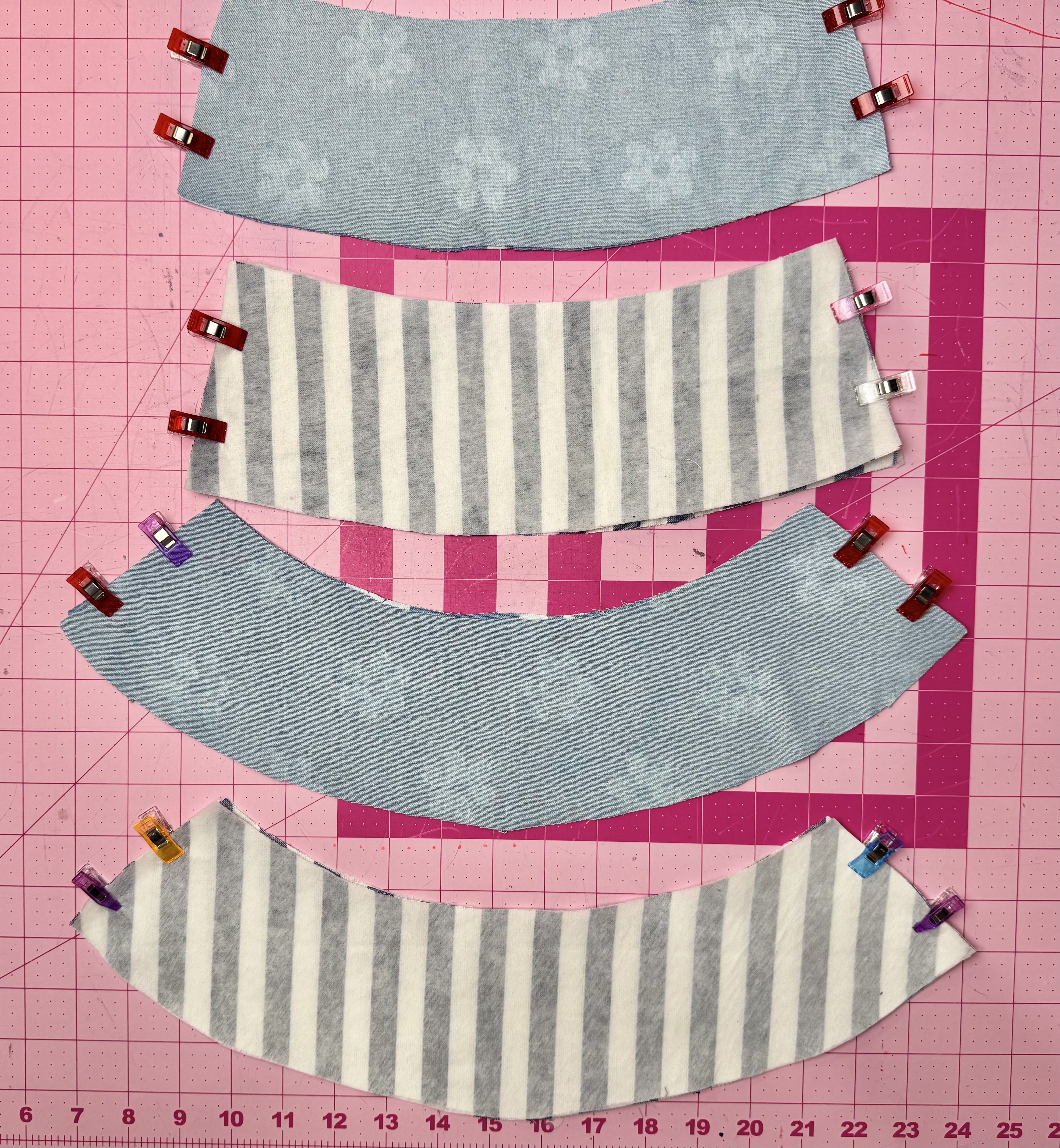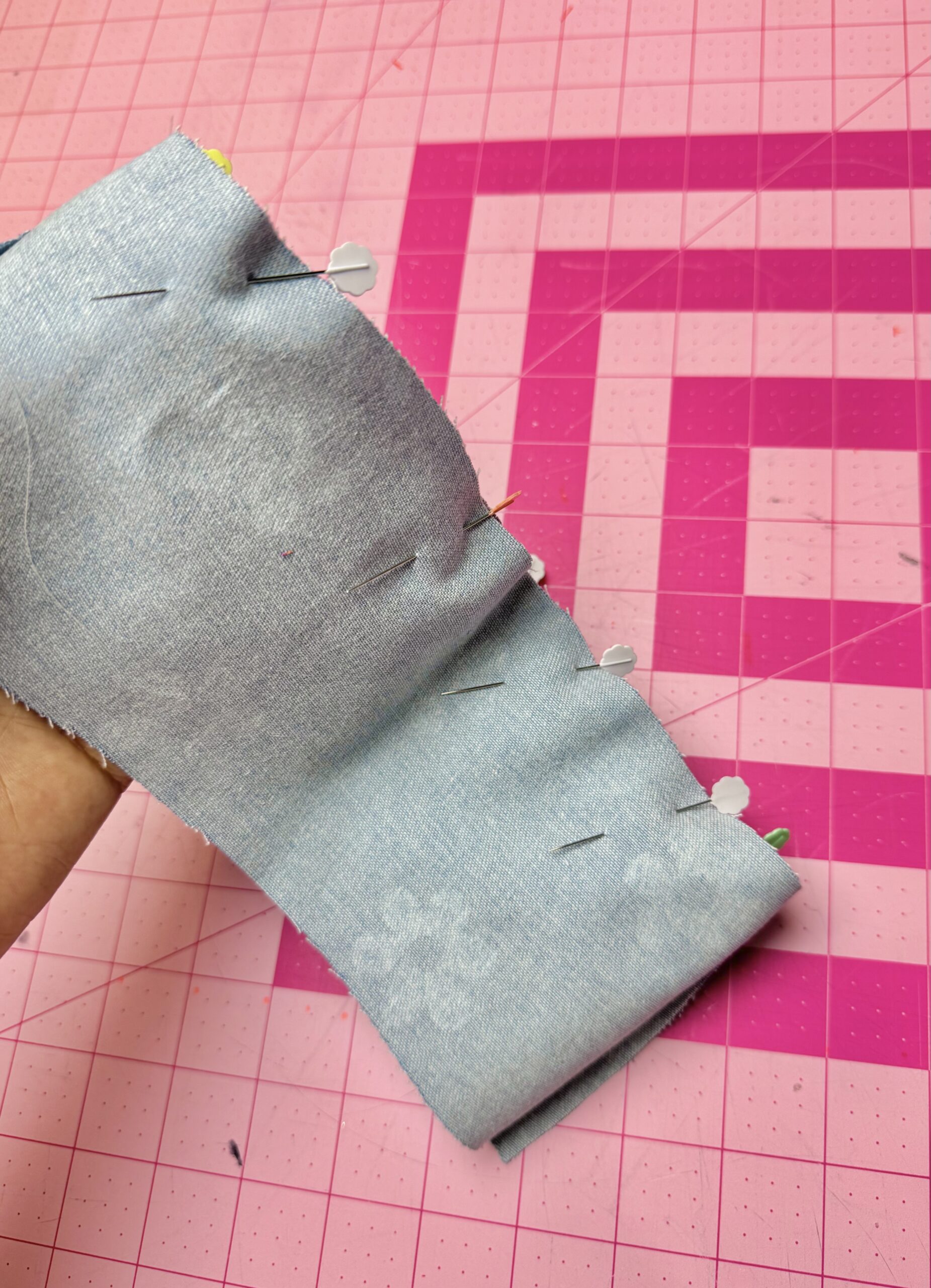 STEP 2: Cut out the two fabrics using the Clover Rotary Cutter (60 mm). When choosing fabric, it’s best to choose woven fabric. I used denim fabrics for my hat. If you use heavier fabrics, you don’t need the medium weight interfacing. However, I used the interfacing because one of my fabrics had a slight stretch. Use the Clover Wonder Clips and with right sides facing, hold the sides in place and stitch together.