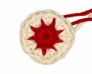 Fasten off the Tan yarn and continue in Red yarn.