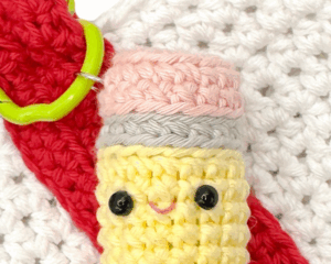 Bag charms are sooooo IN right now. Here’s a fun back-to-school themed make – and a bonus, it’s a 2-in-1 crochet pattern!!