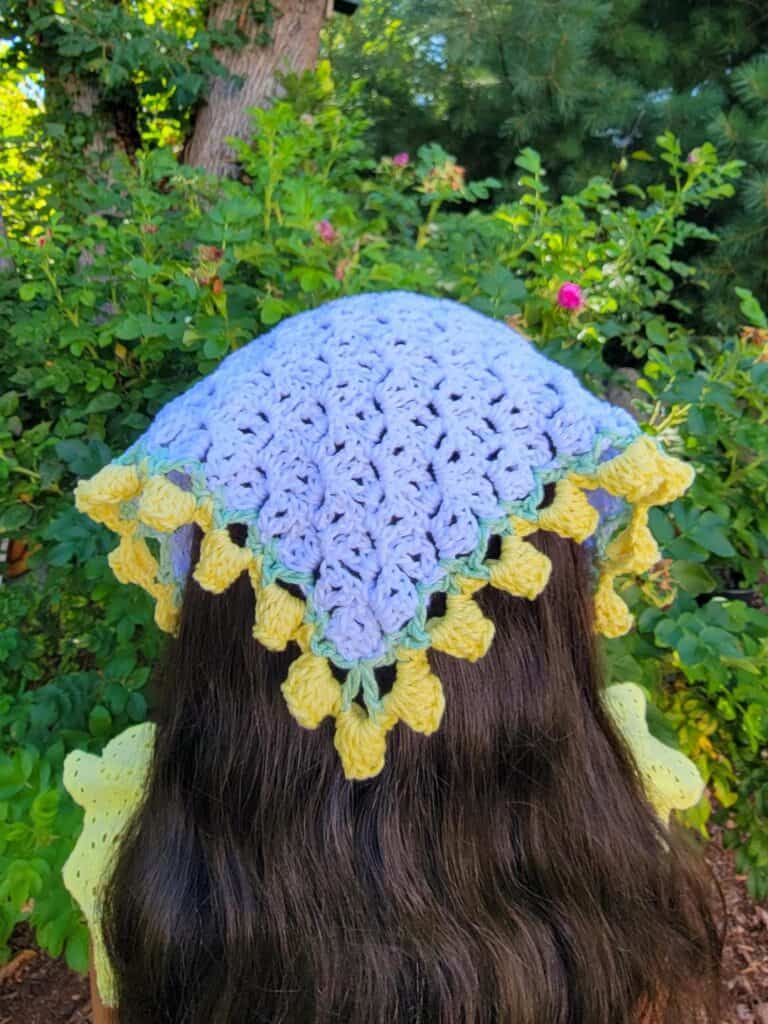 Hello, wonderful people! Looking for a headpiece that adds a touch of boho flair to your outfit? Allow me to present to you the Summer Bandana, my most recent crochet creation. It features a simple V-st C2C (Corner to Corner) stitch design with a lovely popcorn stitch border. This versatile accessory is fantastic for keeping your hair back on windy days while still looking elegant and attractive! It ties comfortably around your head.