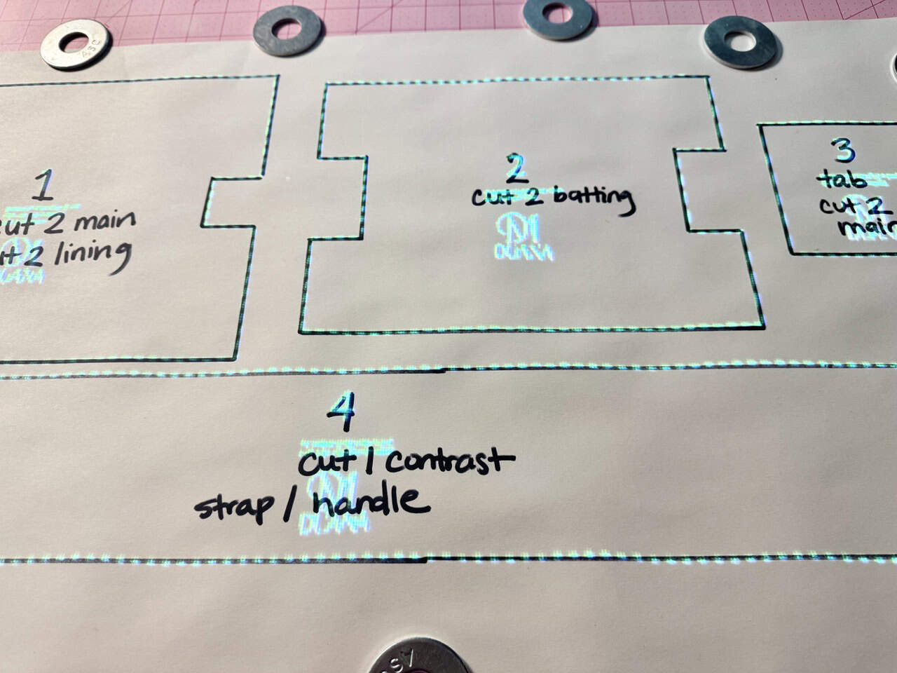 - 1 fat quarter for bag body and tabs