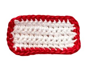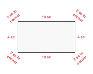 - Bottom: 2 sc into the same st (corner), 10 sc, 2 sc into the same st (corner)