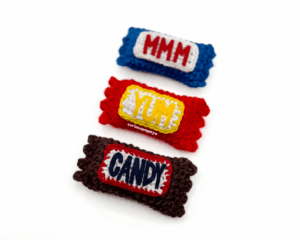 - In this pattern, I am using the “yarn under” method of crocheting. This creates a beautiful “x-shaped” stitch definition. Please note that if you choose to “yarn over” instead, you may need to adjust your tension on the “label” part of the pattern so that it spans the candy bar wrapper properly.