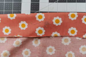 To keep the layers from shifting, she used her Heart-Shaped Pins to secure the fabrics together inside the seam allowance and Wonder Clips around the outer edge for extra hold.