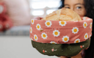 Hi everyone! My name is Cataleya (@happystitches_us on IG), a 10-year-old sewist wanted to sew a fabric bowl for my homemade sourdough bread — something soft, cozy, and perfectly “fall.” I picked a daisy print cotton fabric for the outside and a deep mushroom-green lining for the inside. Together, they felt like how I envision autumn: warm, natural, and just a little bit whimsical. From there, I started creating this cozy reversible bowl, filled with texture, color, and a tiny nod to the change of seasons.