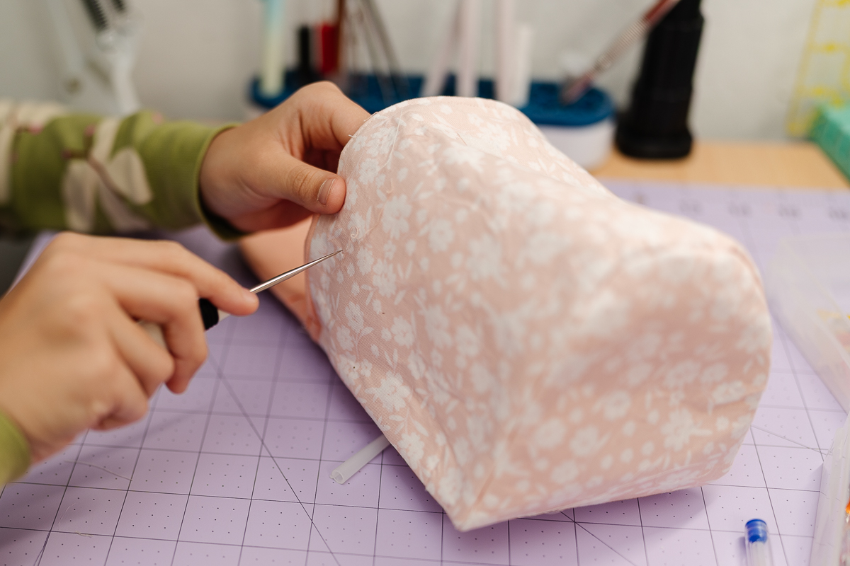 • The Stuffing: Flip it right-side out. Stuff it with your leftover fabric scraps until it’s nice and puffy, then sew the gap closed. Set this aside for the very last step!