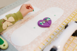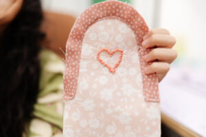 • Heart Detail: Use the Clover Water Erasable Tracing Paper and Double Tracing Tool to trace a heart onto the front. Sew French knots along the outline with embroidery thread.