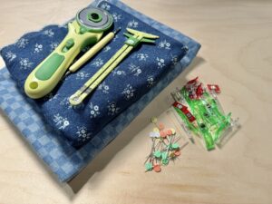 1) Using the Clover Rotary Cutter (60 mm), cut out the pieces for the apron. The measurements are: