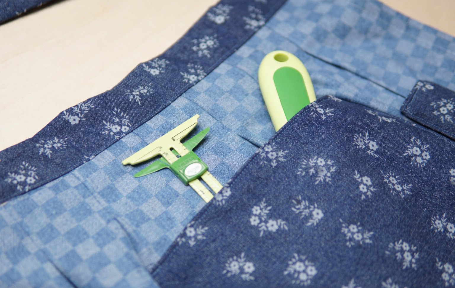 - 1/4 yard cotton/denim fabric (contrast color)
