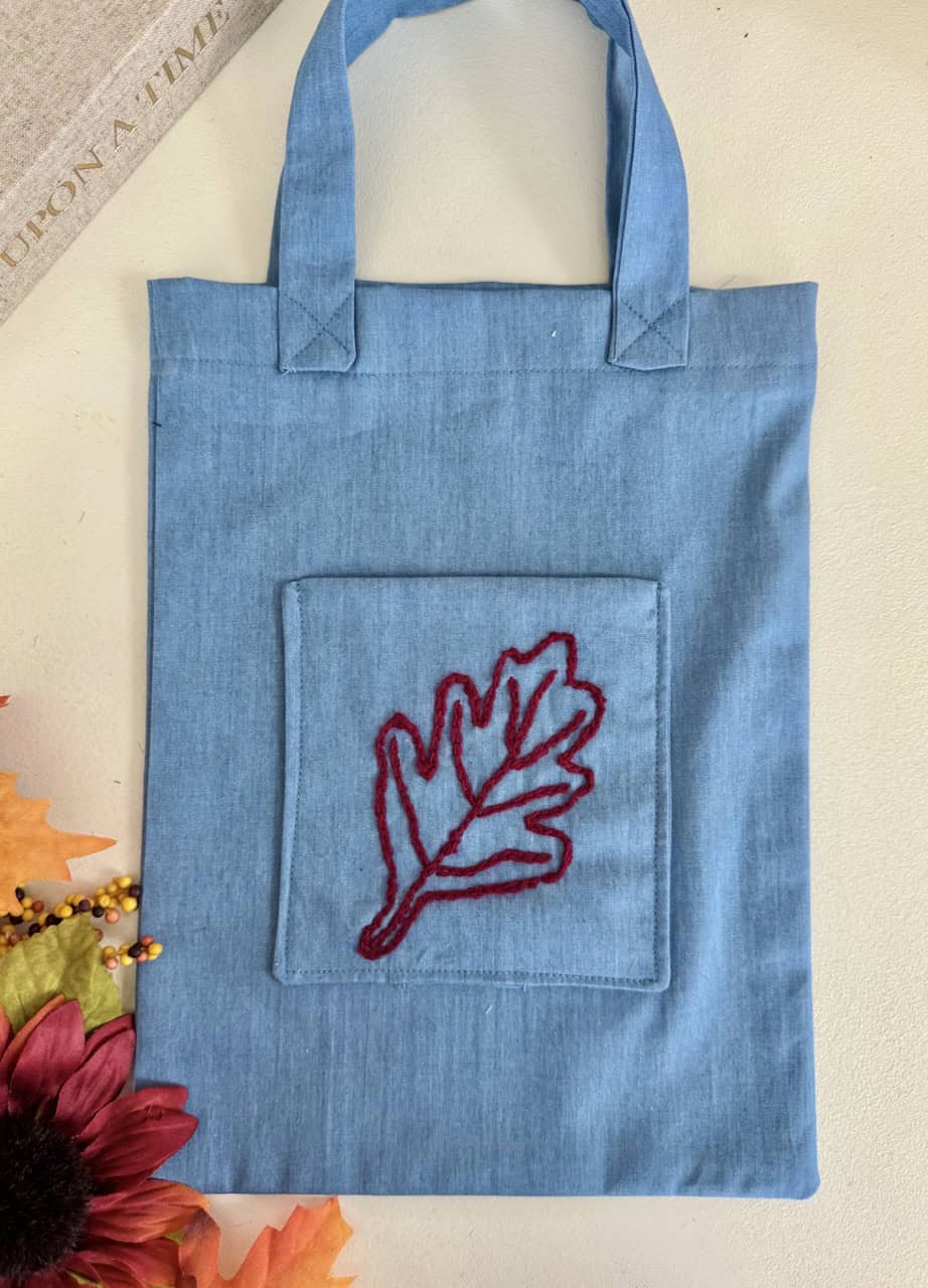 Hello everybody! I’m excited to say that fall is FINALLY here, bringing along all the little adventures we look forward to every year. And this mini tote bag feels just right for the season….perfect for strolling through pumpkin patches, heading out for apple picking, or carrying home a box of warm cider donuts. It’s big enough for farmers’ market finds, yet small enough to use everyday without carrying too much. The embroidered leaf also adds that personal touch, making it a sweet reminder of the season’s memories 🙂 Materials Clover…