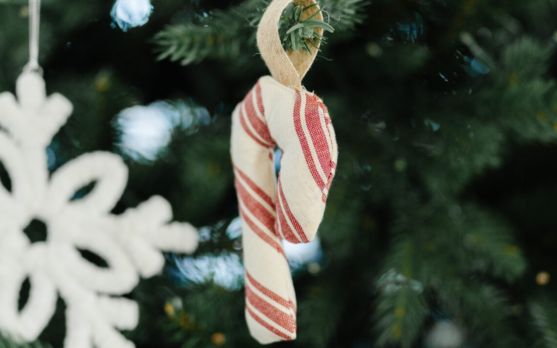 Hi! I’m Cataleya, and today I’m going to show you how I made two cute 3D Christmas ornaments — a candy cane and a Christmas tree! These are super fun, beginner-friendly projects, and I used my favorite Clover tools to help me sew everything neatly. MATERIALS (candy cane ornament): two 10×10 cotton fabric pieces striped fabric cut on a 45° angle fiber fill (or scrap fabric!) jute ribbon 2-3″ thread to match MATERIALS (Christmas tree ornament): 7×7 green floral cotton (front) 7×7 cream flannel (back) fiber fill (or scrap fabric!) velvet…